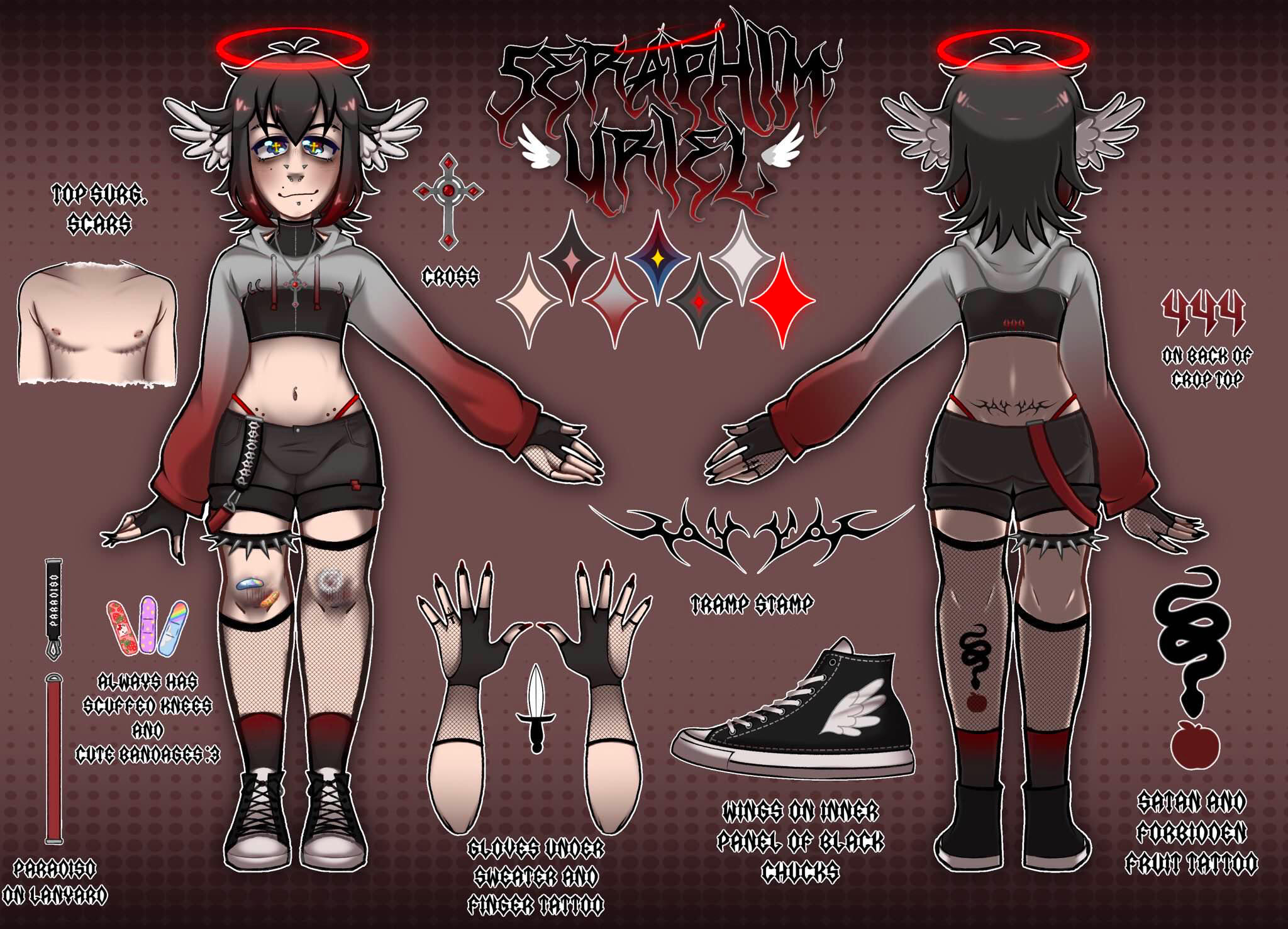 Character Designer: SelfUriel is a Fallen Angel VTuber. His primary language is English. He is known for his gaming content, often playing horror games. Uriel is the lapdog of the captain, sweet but also lazy.